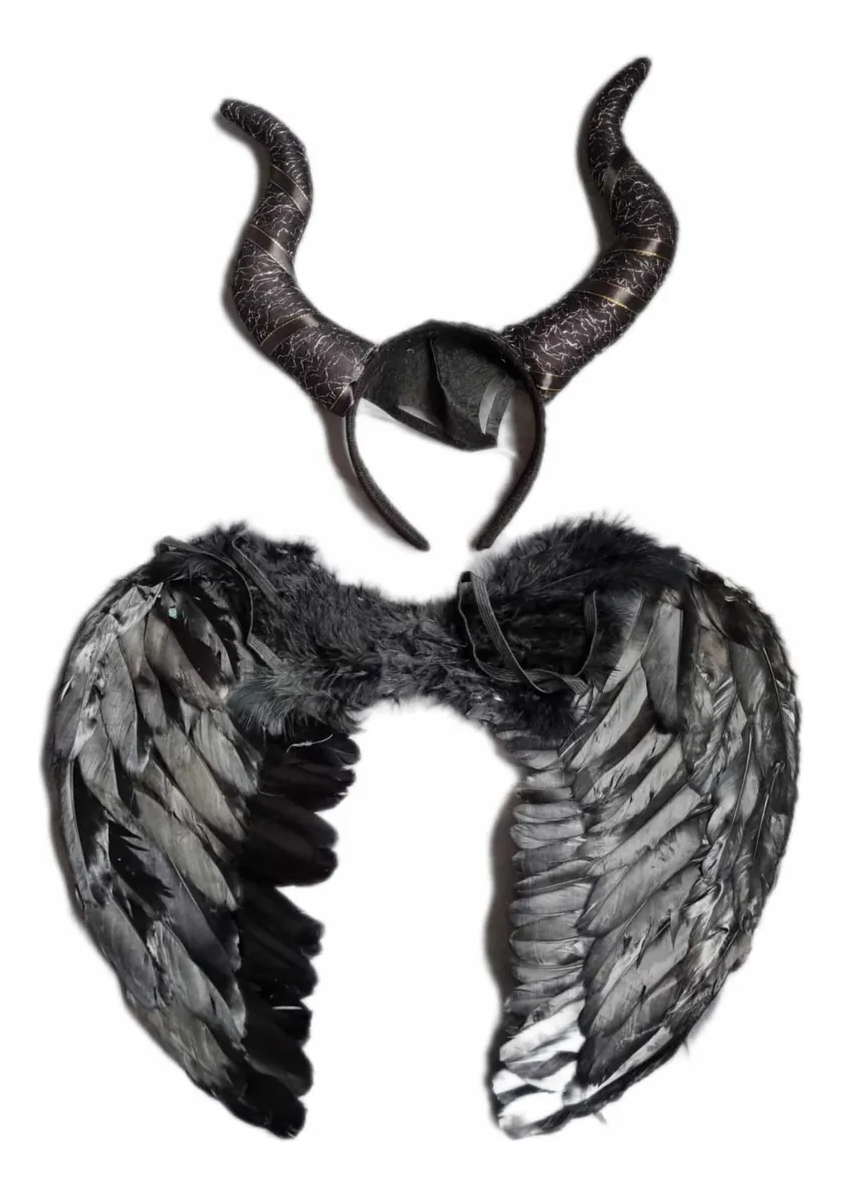 Alas de Plumas Negras y Vincha Cuernos de Maléfica